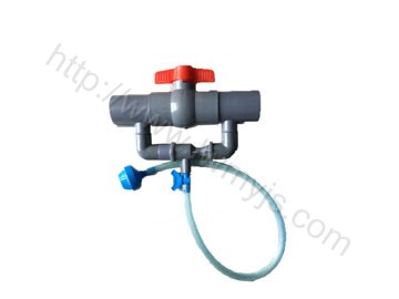 文丘里施肥器与微灌系统或灌区入口处的供水管控制阀门并联安装,使用时将控制阀门关小,造成控制阀门前后有一定的压差,使水流利经过安装文丘里施肥器的支管,用水流通过文丘里管产生的真空吸力,将肥料溶液从敞口的肥料桶中均匀吸入管道系统进行施肥。